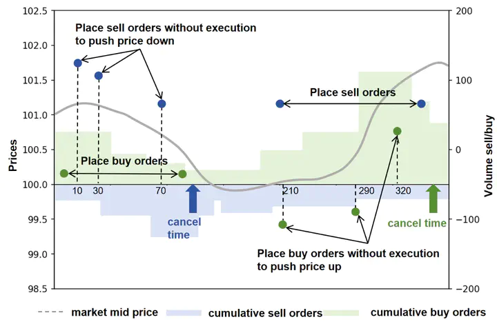 Image credit: ACMSpoofing detection in financial trading is crucial, especially for identifying complex behaviors such as conspiracy spoofing. Traditional machine-learning approaches primarily focus on isolated node features, often overlooking the broader context of interconnected nodes. Graph-based techniques, particularly Graph Neural Networks (GNNs), have advanced the field by leveraging relational information effectively. However, in real-world spoofing detection datasets, trading behaviors exhibit dynamic, irregular patterns. Existing spoofing detection methods, though effective in some scenarios, struggle to capture the complexity of dynamic and diverse, evolving inter-node relationships. To address these challenges, we propose a novel framework called the Generative Dynamic Graph Model (GDGM), which models dynamic trading behaviors and the relationships among nodes to learn representations for conspiracy spoofing detection. Specifically, our approach incorporates the generative dynamic latent space to capture the temporal patterns and evolving market conditions. Raw trading data is first converted into time-stamped sequences. Then we model trading behaviors using the neural ordinary differential equations and gated recurrent units, to generate the representation incorporating temporal dynamics of spoofing patterns. Furthermore, pseudo-label generation and heterogeneous aggregation techniques are employed to gather relevant information and enhance the detection performance for conspiratorial spoofing behaviors. Experiments conducted on spoofing detection datasets demonstrate that our approach outperforms state-of-the-art models in detection accuracy. Additionally, our spoofing detection system has been successfully deployed in one of the largest global trading markets, further validating the practical applicability and performance of the proposed method.
